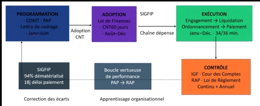 Cette architecture pyramidale garantit que chaque franc inscrit dans la LFI adoptée le 31 mars 2026 s’inscrit dans une logique stratégique de long terme, et non dans le simple réflexe de la reconduction automatique des crédits de l’année précédente, vice cardinal de l’ancien budget de moyens.