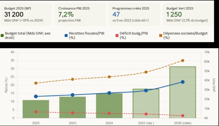 Source : DNB/MEF Guinée, Loi de Finances 2025 ; Loi-Programme 2026–2030, CNT Guinée