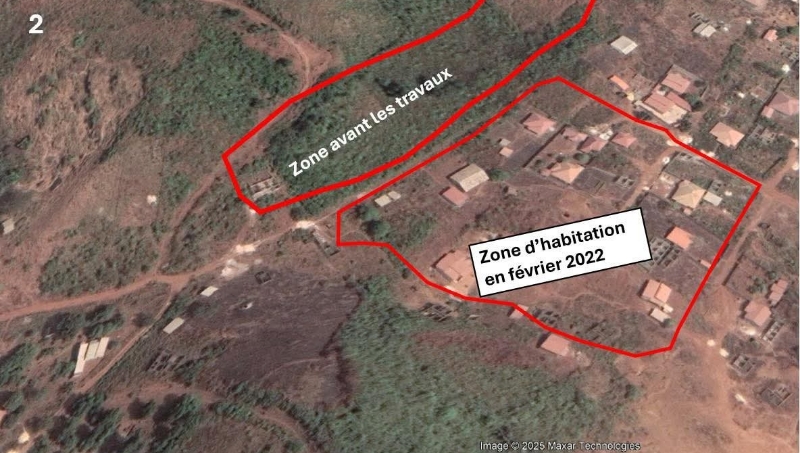 L’analyse s’appuie également sur des images satellites de 2022, montrant que la zone était auparavant végétalisée, ce qui limitait l’érosion naturelle.