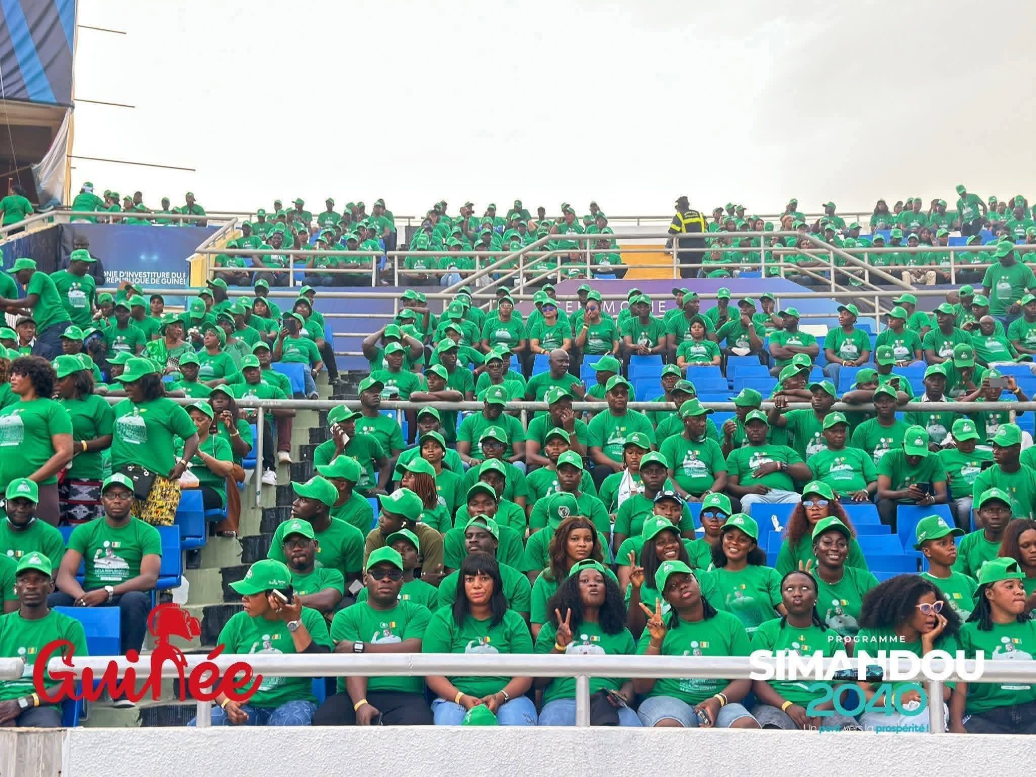 Les gradins offraient un spectacle saisissant : une mosaïque de t-shirts verts, rouges et jaunes, et des milliers de citoyens arborant fièrement le slogan « Simandou 2040 », symbole de l’ambition économique portée par le nouveau régime.