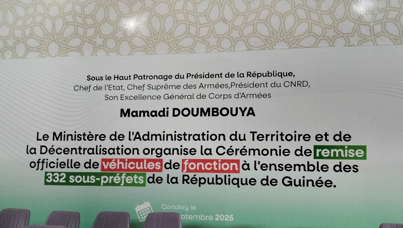 D ans le cadre de la modernisation de l’administration territoriale, le gouvernement guinéen, à travers le ministère de l’Administration du Territoire et de la Décentralisation, sous le haut patronage du Chef de l’État, a remis, mardi 9 septembre 2025, des véhicules de fonction aux 332 sous-préfets afin de renforcer leur présence sur le terrain et d’améliorer le service public.