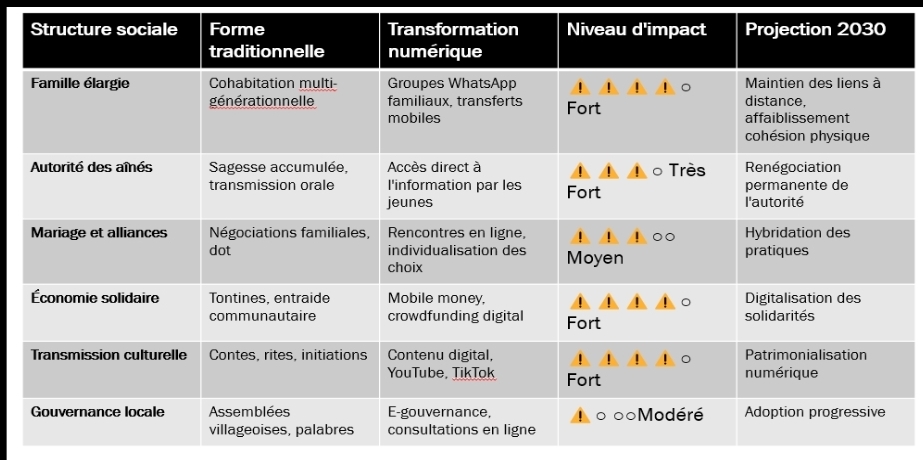 TABLEAU I : IMPACT DU NUMÉRIQUE SUR LES STRUCTURES SOCIALES TRADITIONNELLES