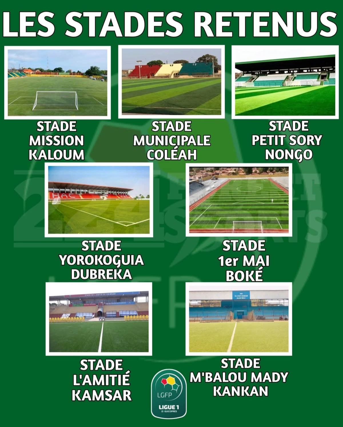 L a Ligue Guinéenne de Football Professionnel (LGFP) a publié la liste des infrastructures retenues pour abriter les rencontres du championnat national de Ligue 1 au titre de la saison sportive 2025-2026.