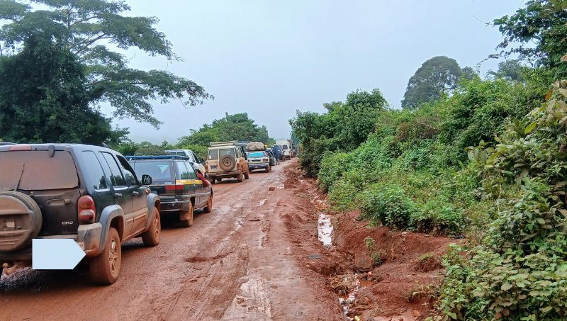 Cet axe essentiel au Fouta Djallon est aujourd’hui méconnaissable : le goudron a disparu, remplacé par des mares de boue et des trous béants qui piègent véhicules et voyageurs.